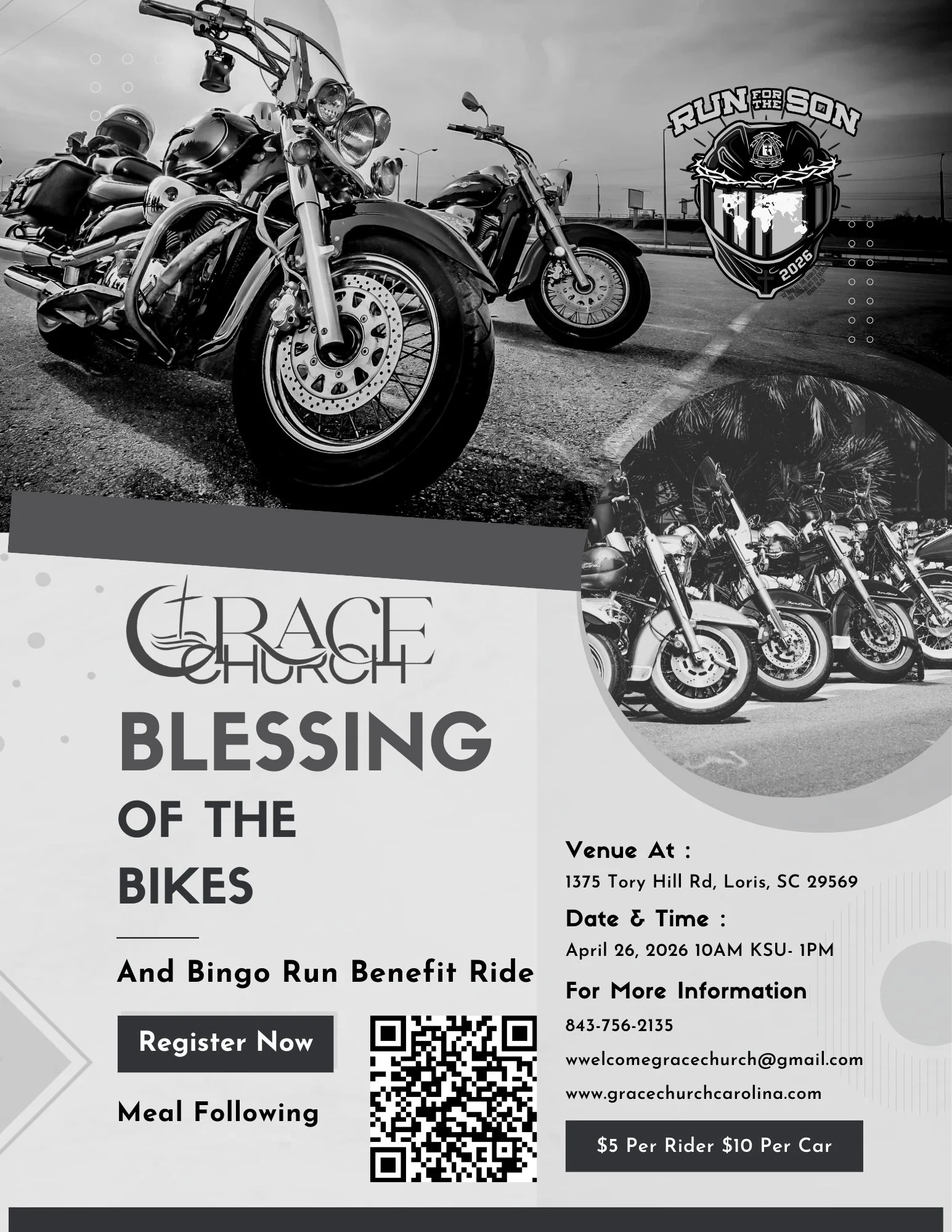 Join us for our annual Blessing of the Bikes, followed by a Benefit Bingo Ride supporting the Christian Motorcycle Association and the Run to the Son Rally.